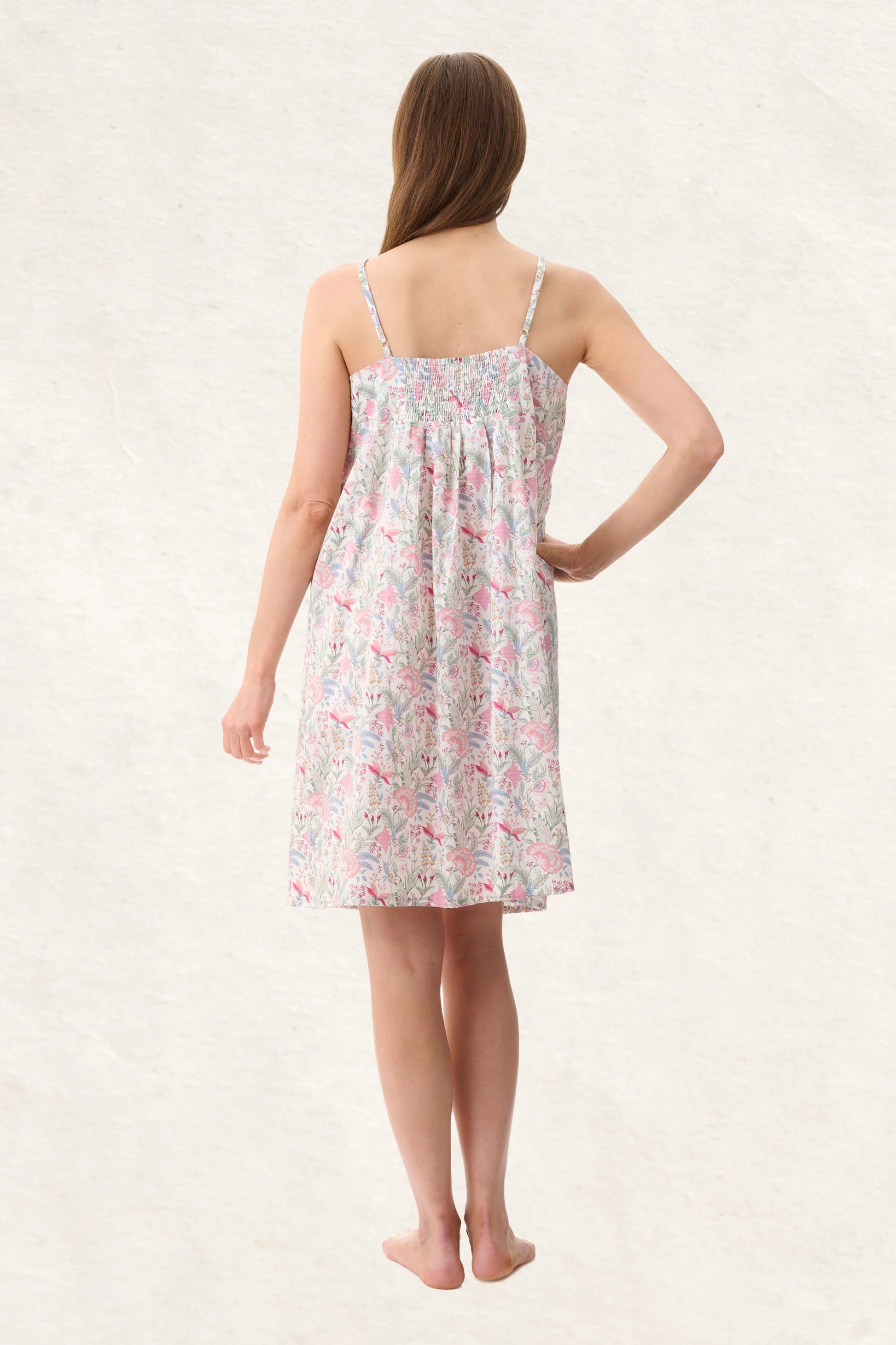 The beautiful Viviene floral print adds a touch of elegance to our pretty short chemise. Featuring a soft lace motif and pleats and crafted from 100% woven cotton. The soft breathable cotton will lull you into a peaceful slumber.