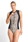 - Zip front opening to waist