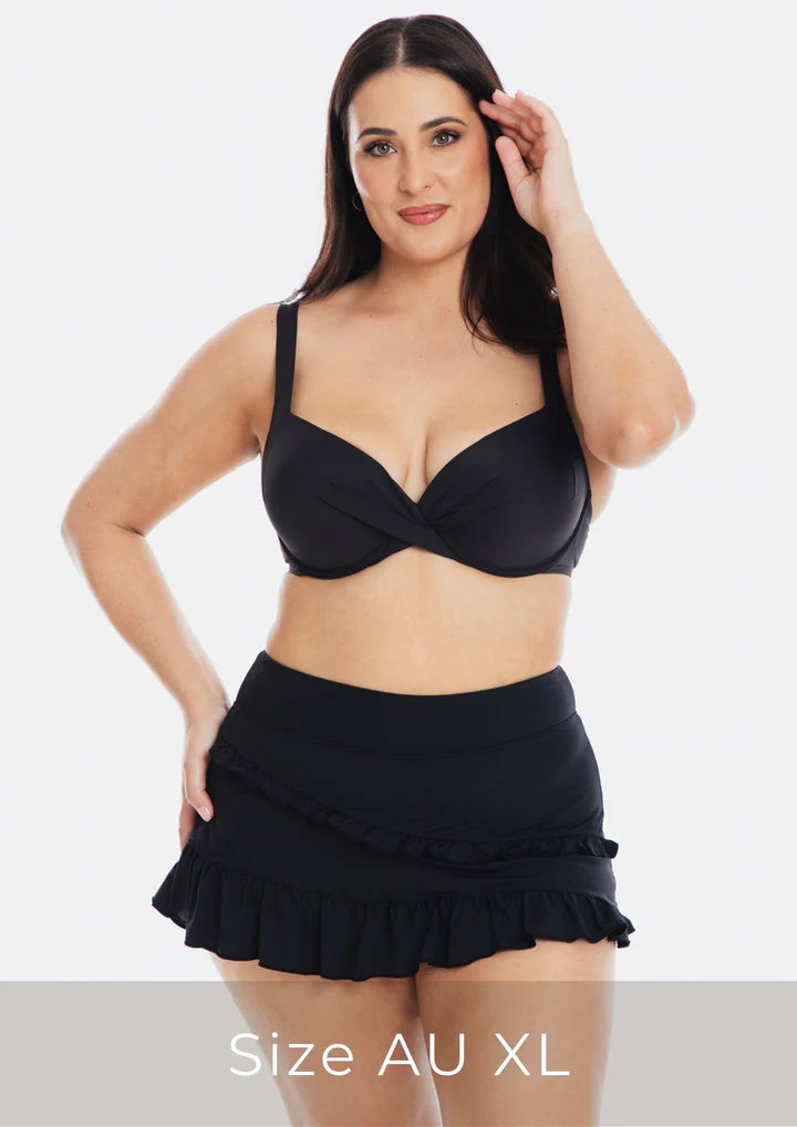 Introducing our classic and immensely popular swim skort, designed with built-in pants and a flattering A-line frill detail in an alluring, exclusive print. This chic and functional piece masterfully combines the elegance of a skirt with the practicality of shorts, providing both comfort and coverage for all your water activities. Whether you're swimming, paddle-boarding, lounging by the pool, or taking a leisurely stroll along the beach, this swim skort is the perfect blend of style and versatility, making it an essential addition to your swimwear collection.