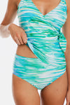 This stylish set features a flattering crossover neckline and a graceful side tie detail that gently shapes the body for a comfortable, confidence-boosting fit. Enjoy the convenience and flexibility of a two-piece set with the smooth, coordinated look of a one-piece. Specially engineered from superior Italian chlorine resistant fabric exclusive to TOGS, this tankini is built to last, making it the perfect choice for both leisurely swims and regular pool use. Add comfort, style, and durability to your swimwear collection today.